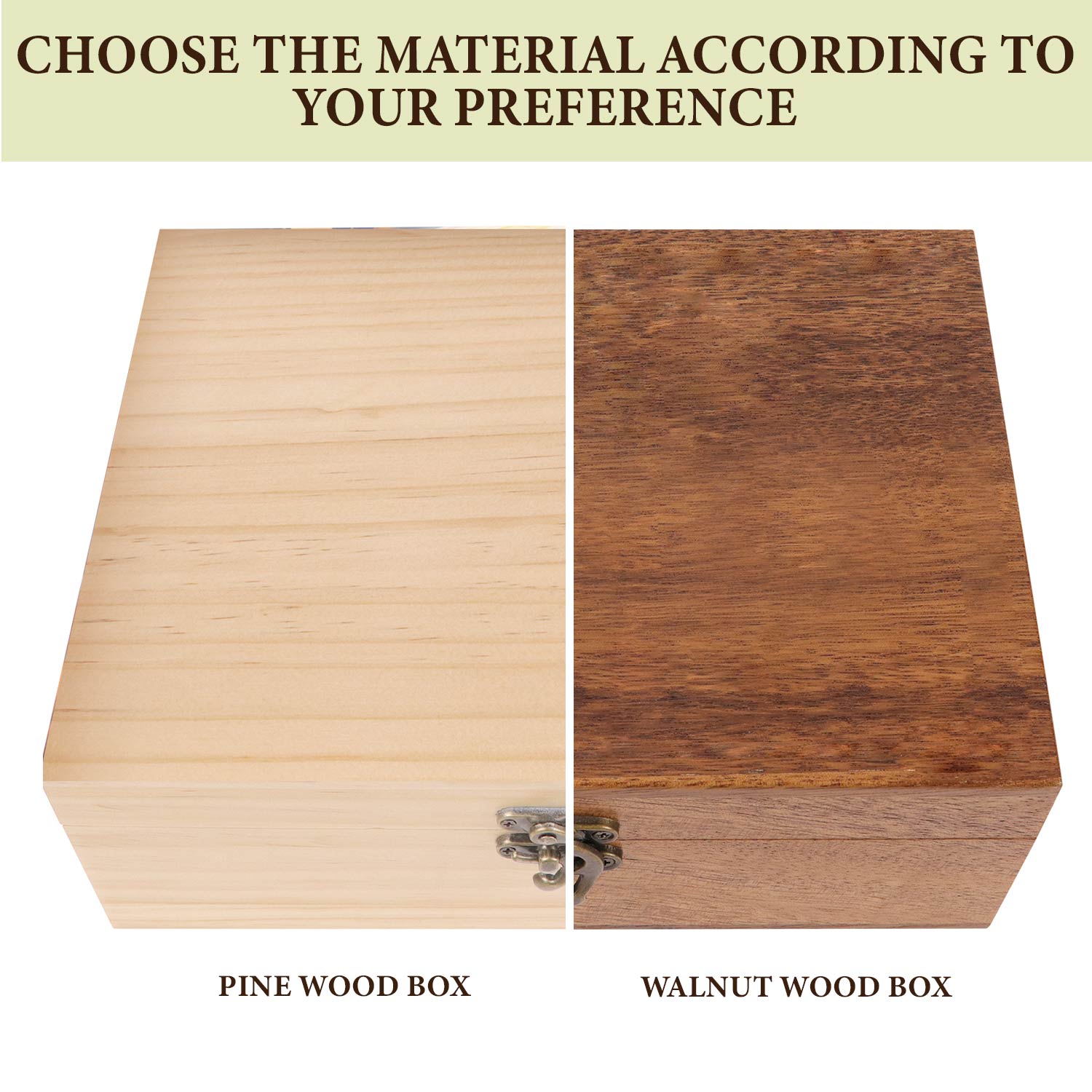 • Crafted from 100% Solid Wood: We offer two durable wood types: Pine and Walnut. Because it's made from pure solid wood, it's exceptionally sturdy and built to last. You can enjoy it for years to come and even use it daily as a storage box.