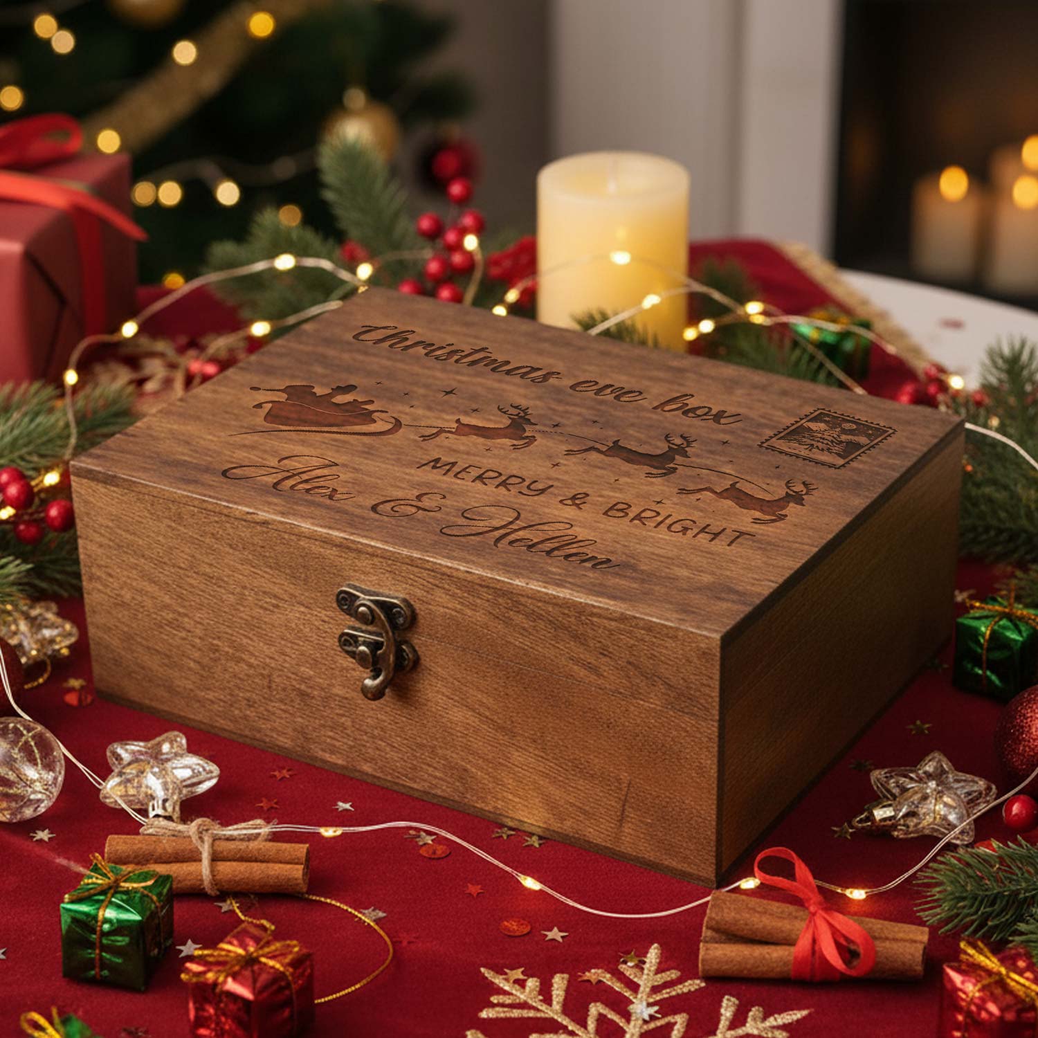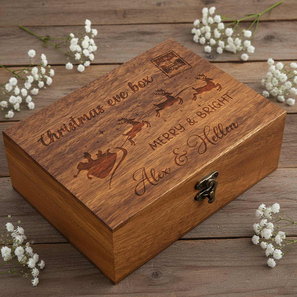 • Customizable Christmas Keepsake Box: Our Christmas Eve wooden box offers six personalized designs to choose from. Whether you select a design featuring a meaningful family photo or a carved reindeer motif, each one brings festive cheer, making it a wonderful decoration for creating a cozy ambiance.