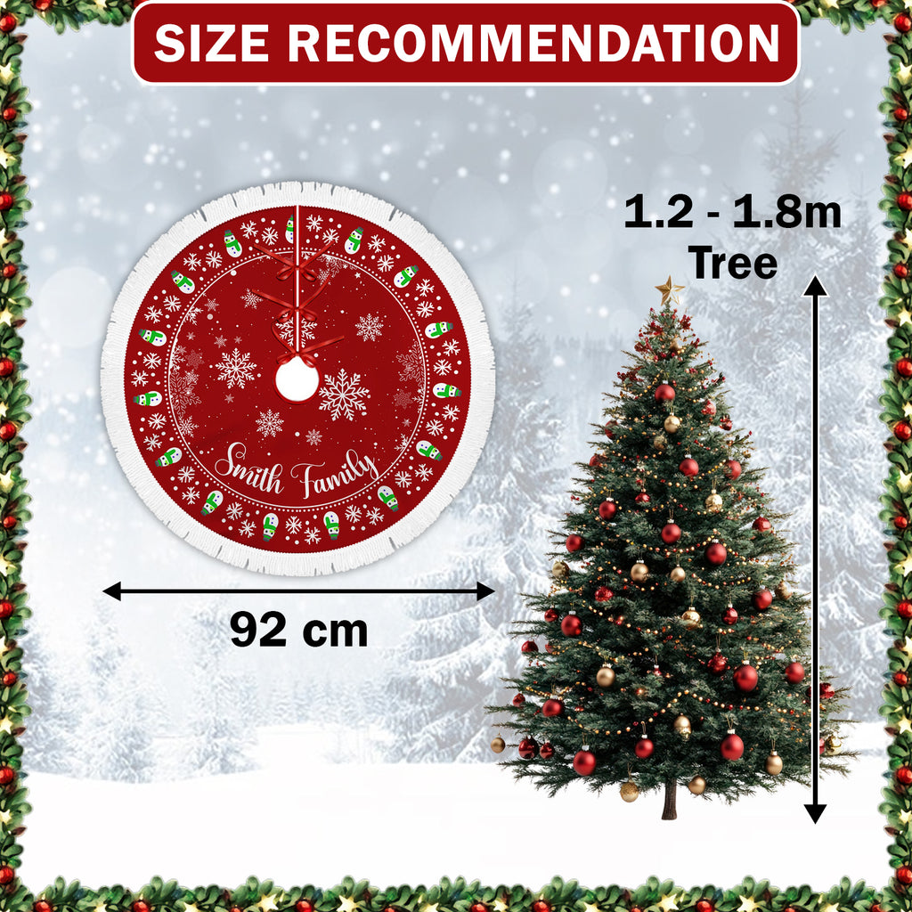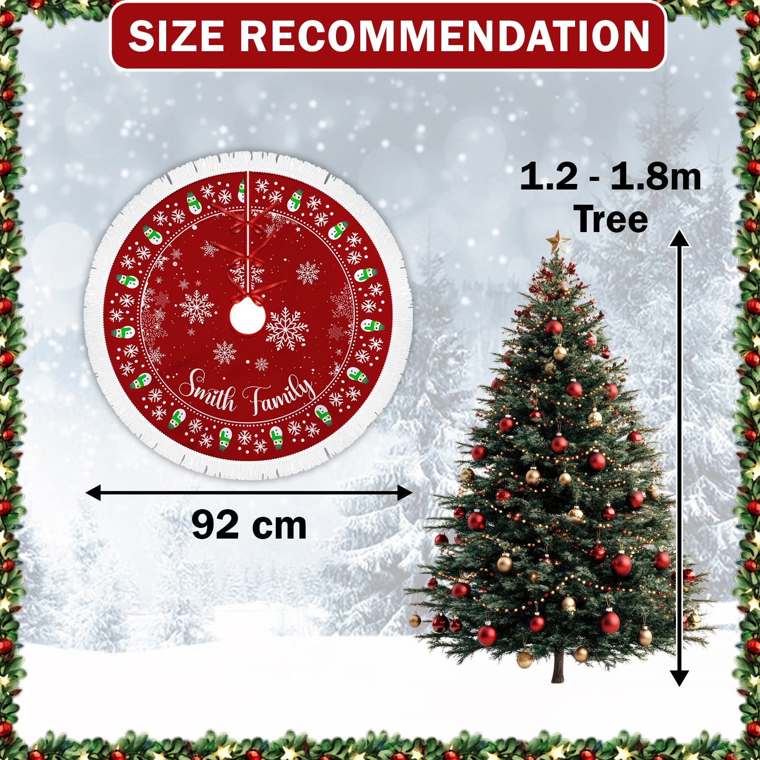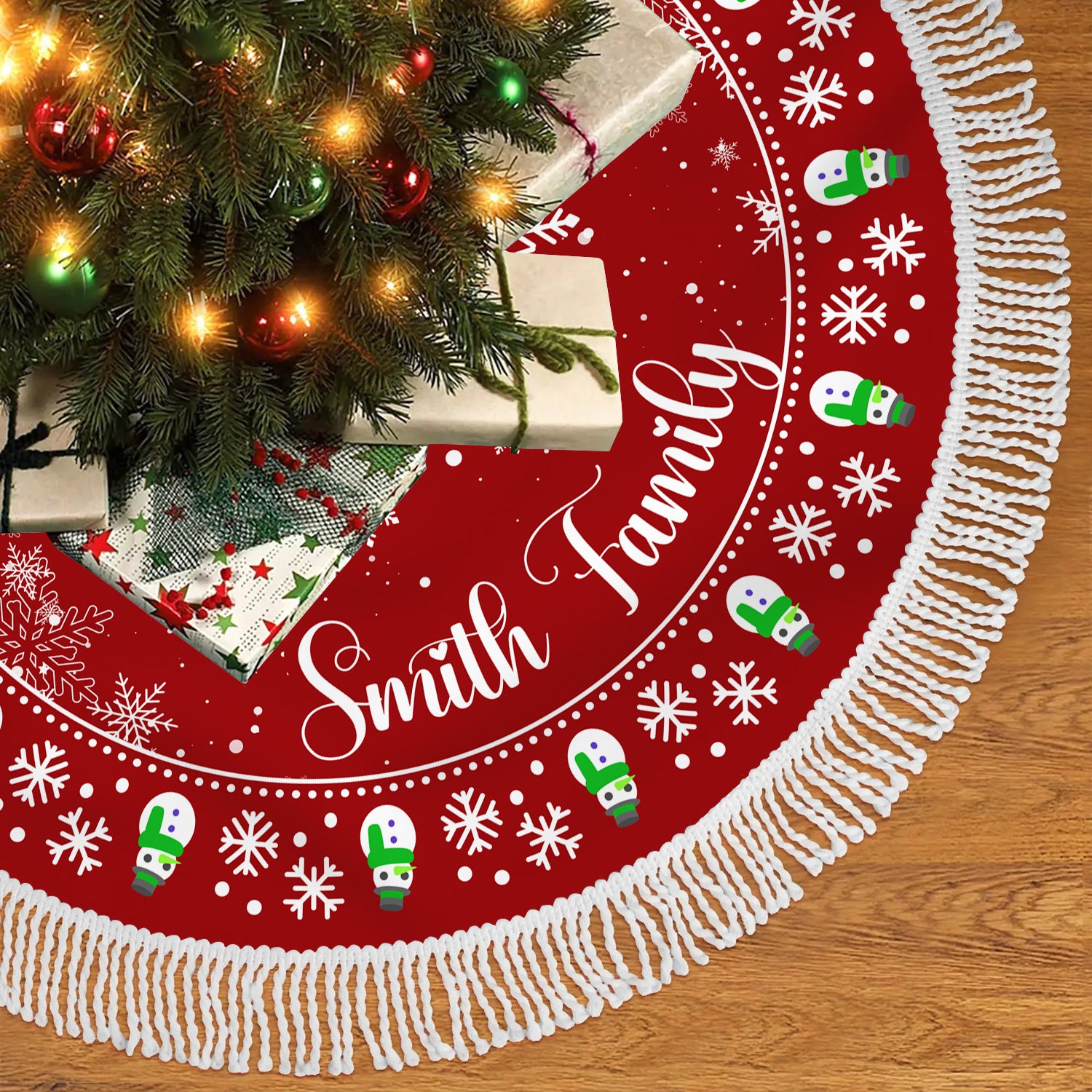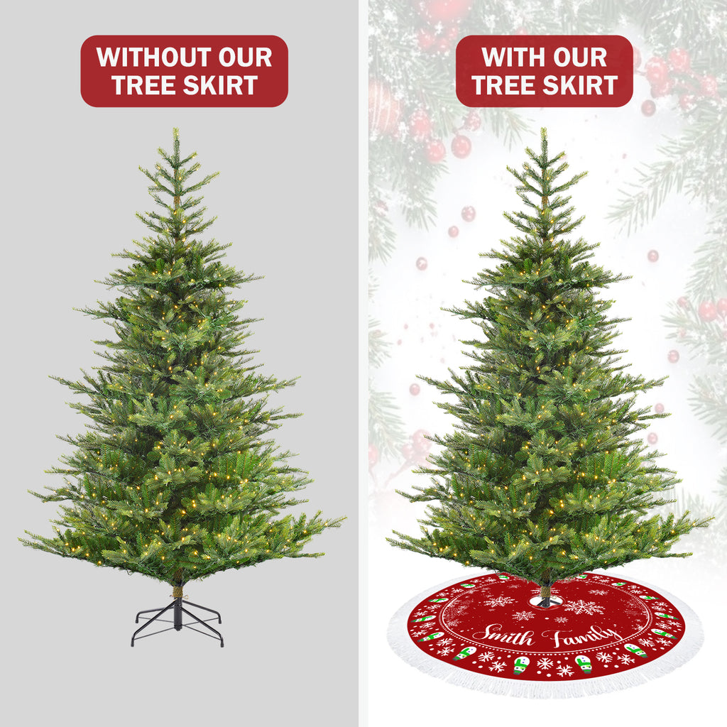• 🎅 Personalized Christmas Tree Skirt: Designed with a Christmas red and gold theme, you can customize the skirt with your family name, creating unique Christmas memories and adding a romantic and warm festive atmosphere to your home or party.