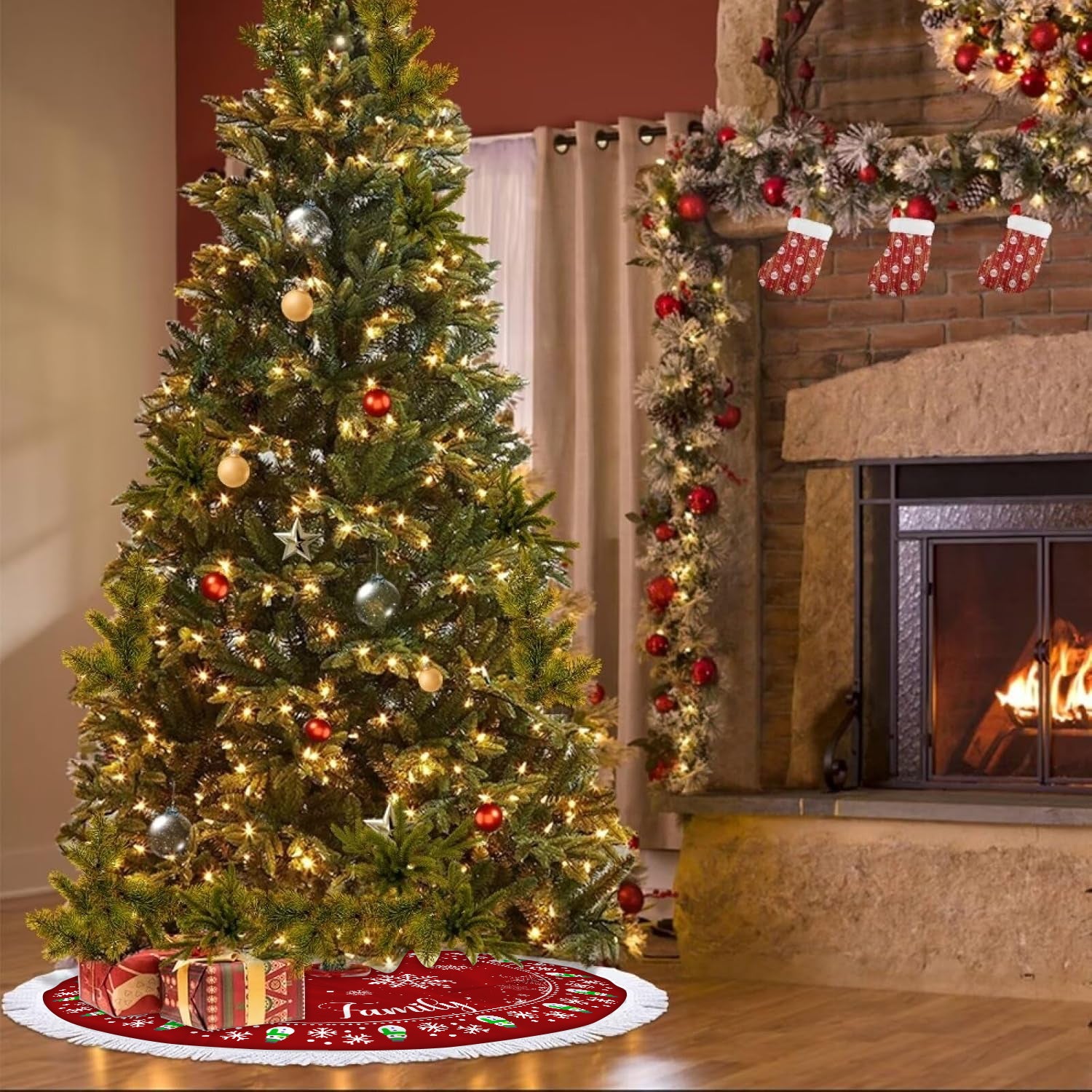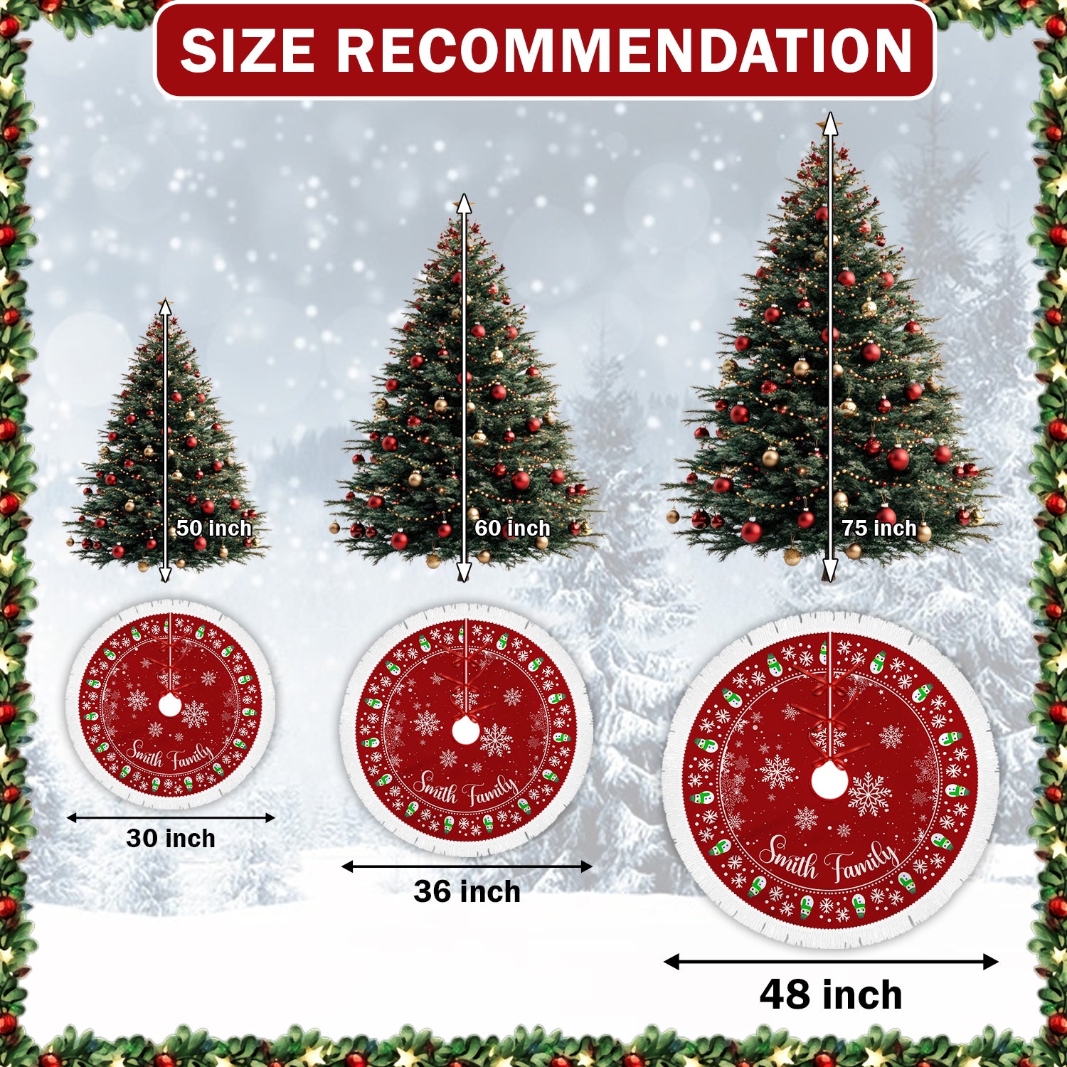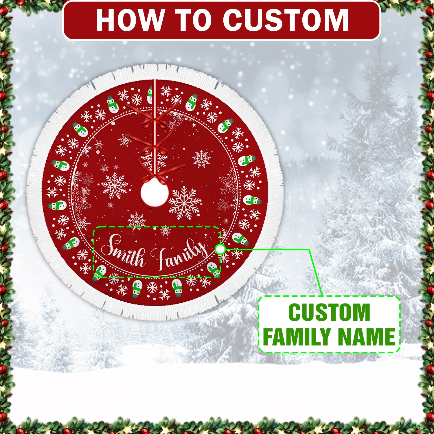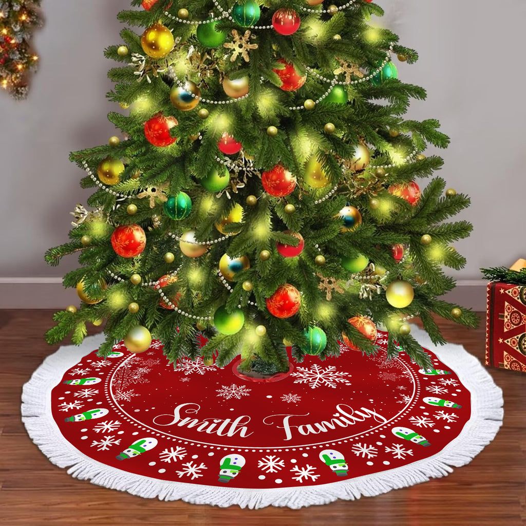 • 🎅 Personalized Christmas Tree Skirt: Designed with a Christmas red and gold theme, you can customize the skirt with your family name, creating unique Christmas memories and adding a romantic and warm festive atmosphere to your home or party.