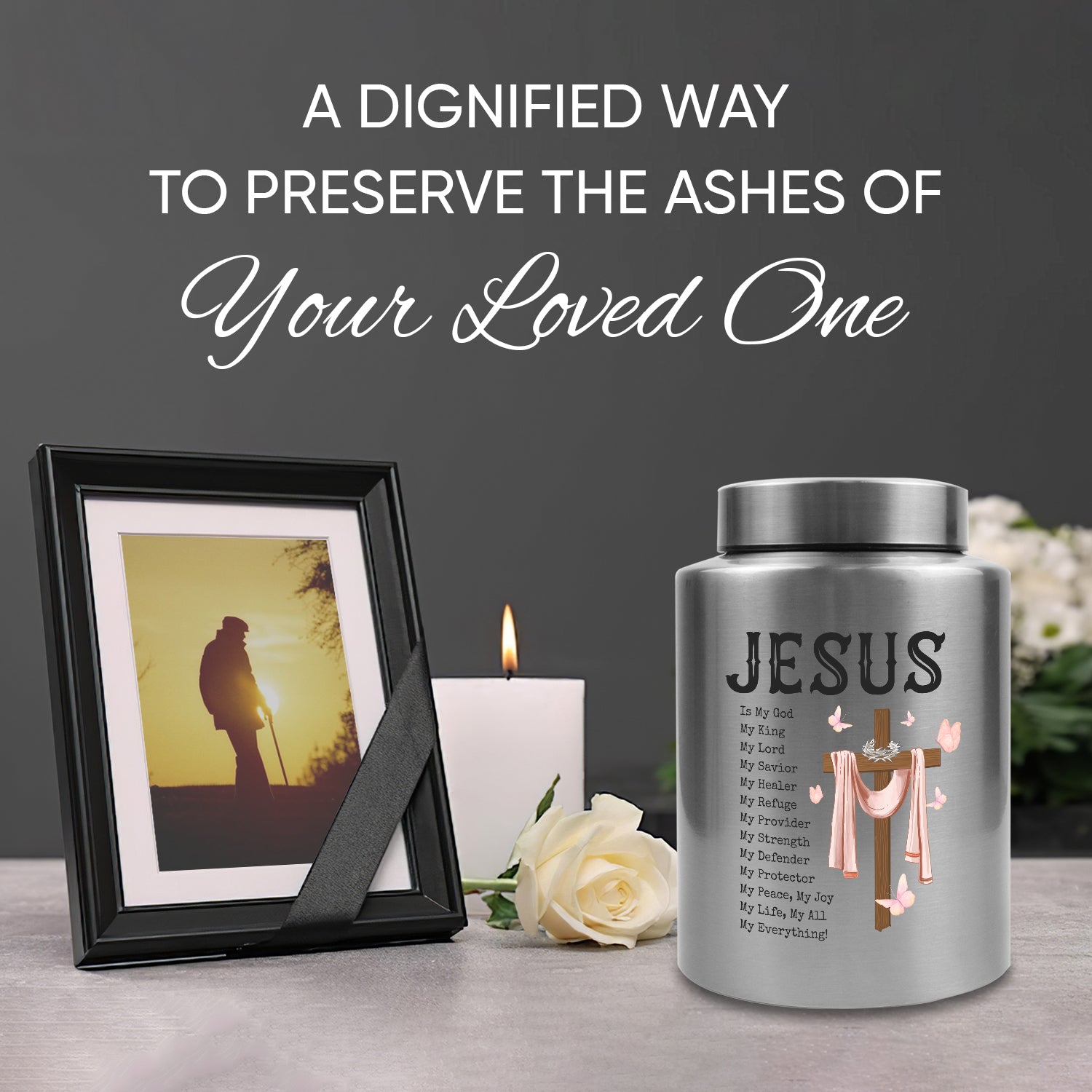 • 💖 Comfort in Faith – Designed with a focus on Christian symbolism, this urn offers spiritual comfort to grieving families, serving as a reminder of eternal life and the promise of reunion in Christ.