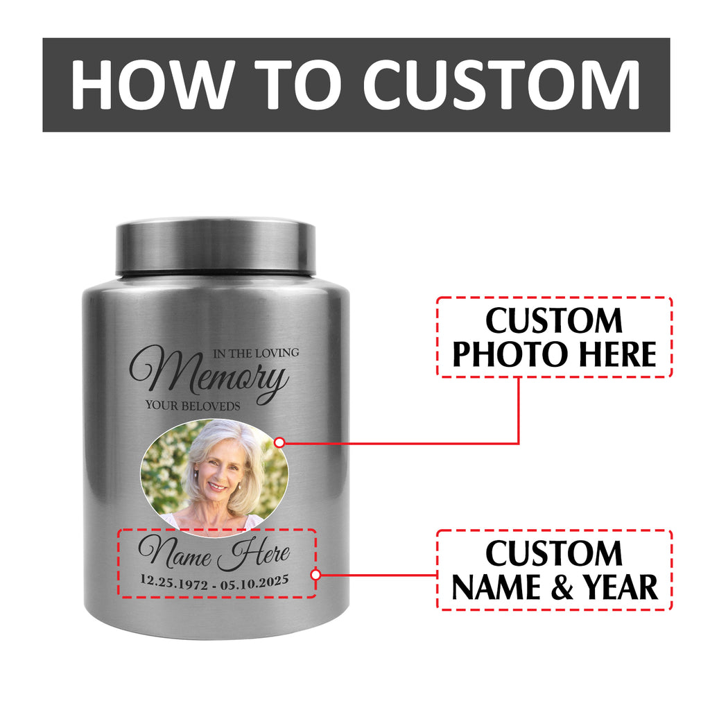 Personalized Urns for Human Ashes, Custom Photo Cremation Ashes Container with Portrait Decorative Funeral Memorial Urn