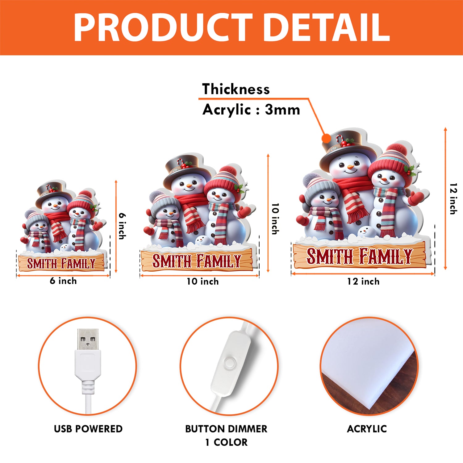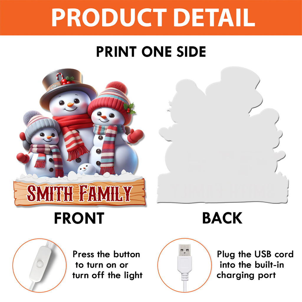 Christmas Decorations, Personalized 3D Effect Light Box LED Indoor, Custom Names Acrylic Night Lamp, Gifts for Christmas Decor, Personalized Snowman Gifts