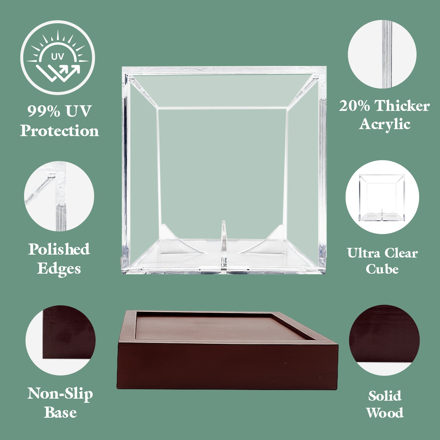 Custom Engraved Baseball Holder Display Case - UV Protected Clear Acrylic Cube with Wooden Base Memorabilia Signed Ball Holder Storage Box
