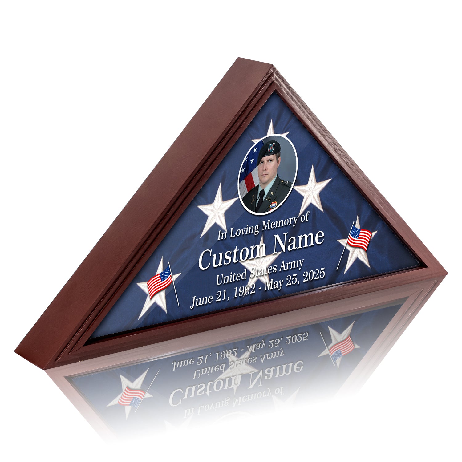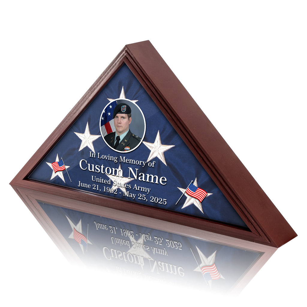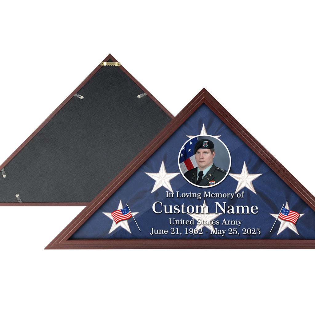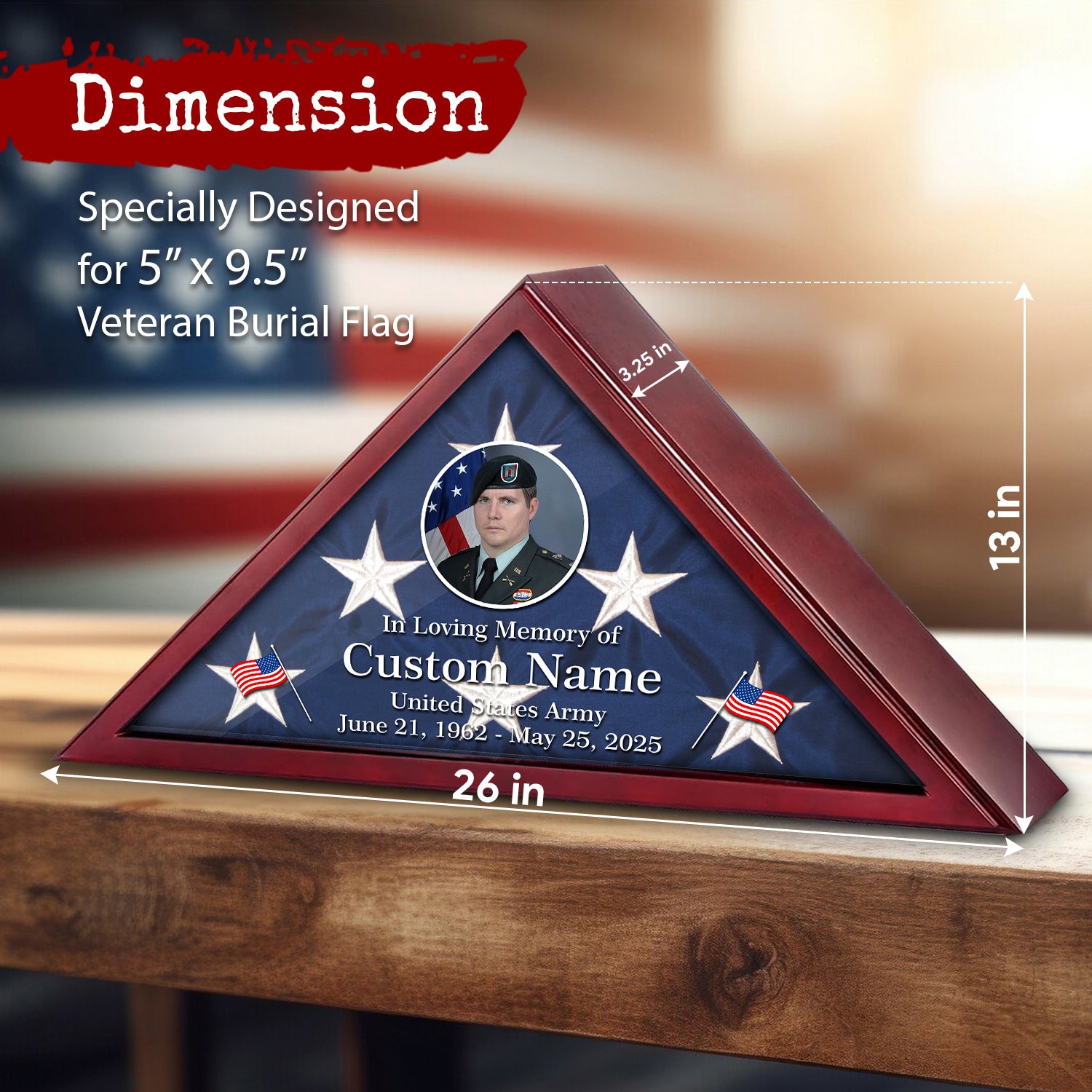 Designed specifically for 5" x 9.5" veteran burial flags, beautifully preserving and displaying the folded flag