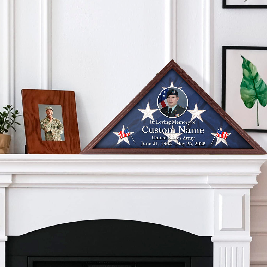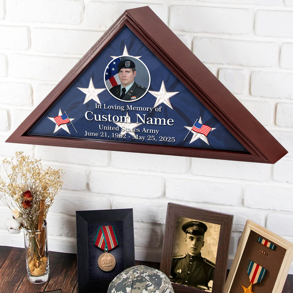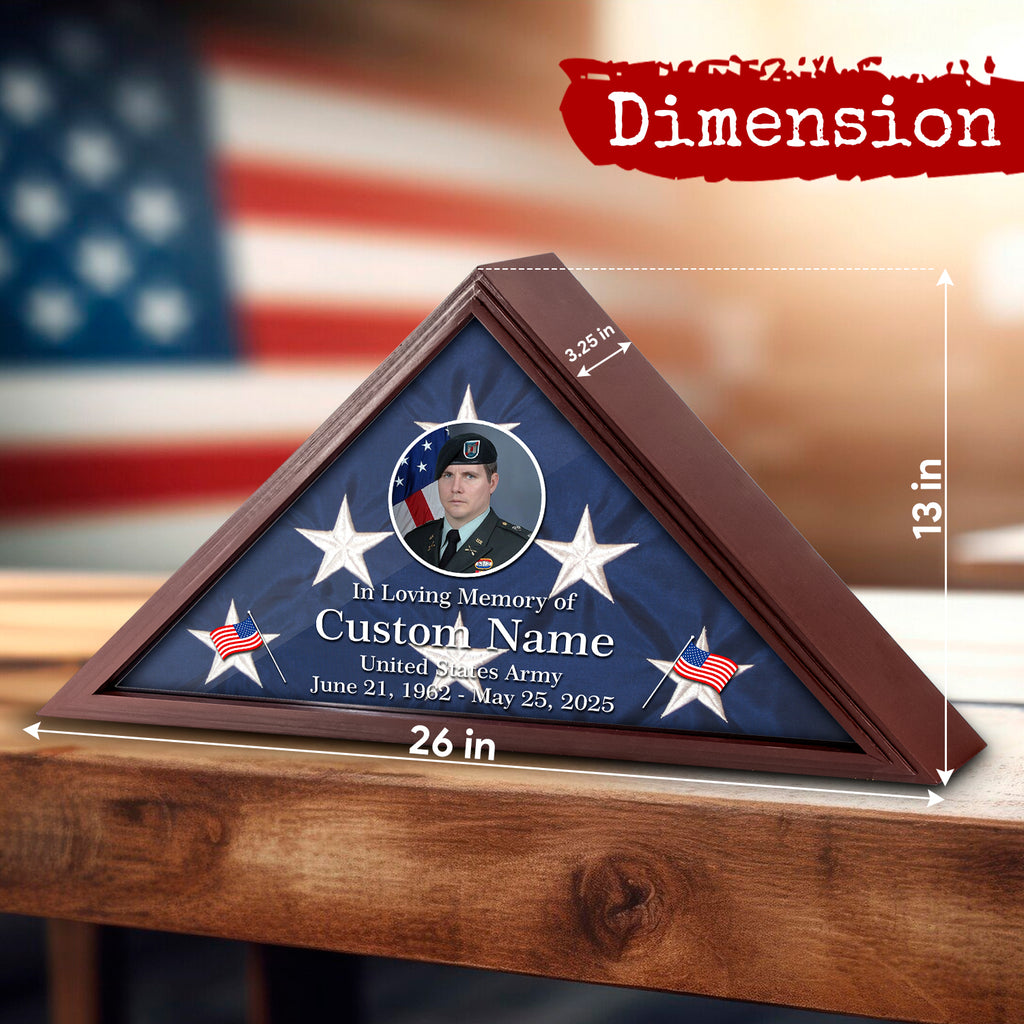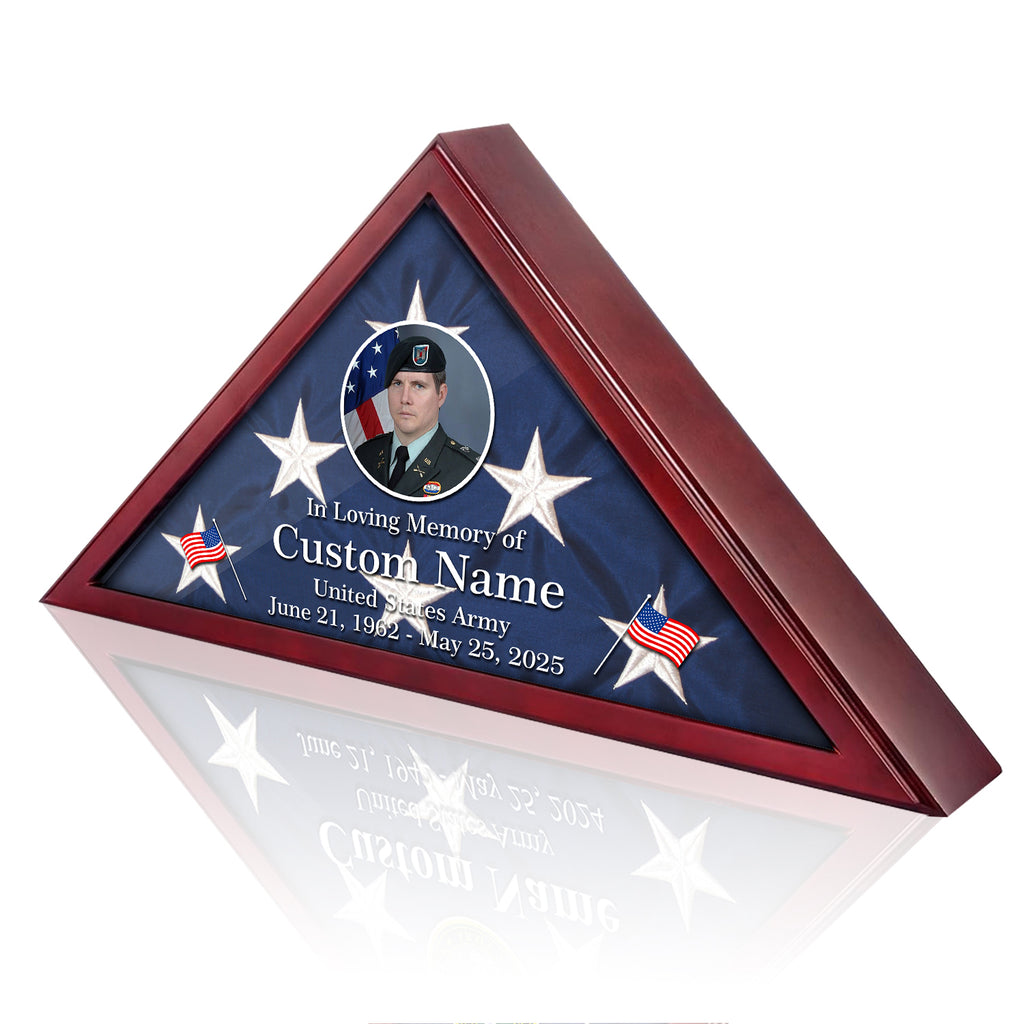 Designed specifically for 5" x 9.5" veteran burial flags, beautifully preserving and displaying the folded flag
