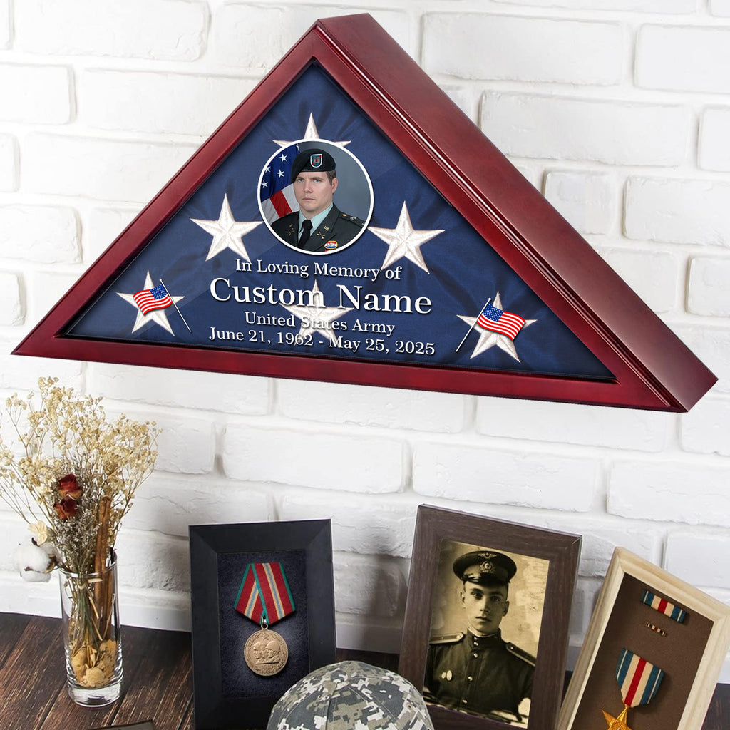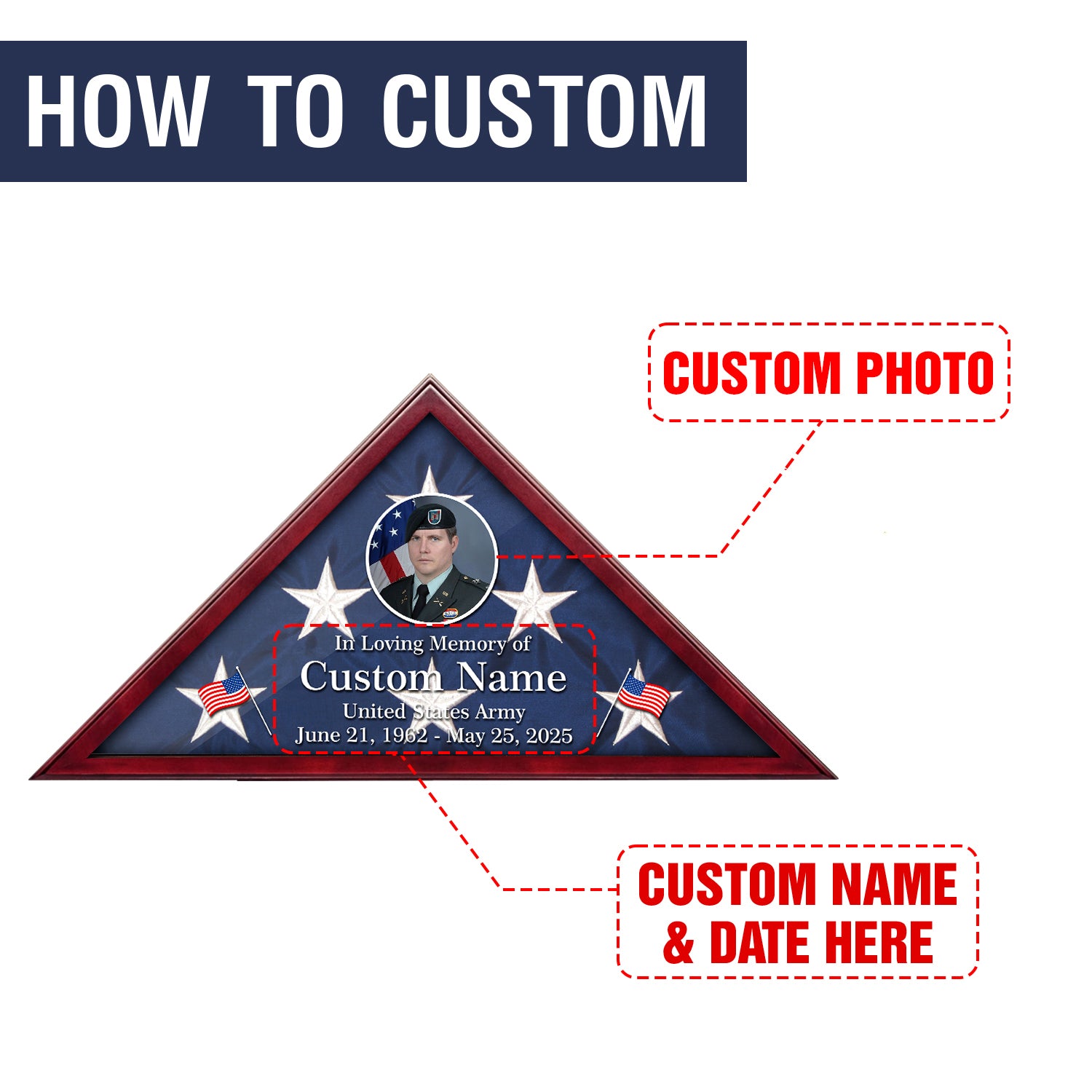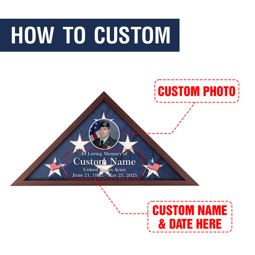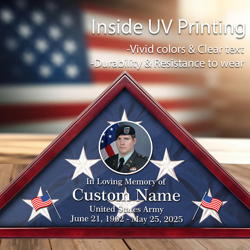 • Customizable Design: Personalize the display case with the veteran's name, rank, or any other custom text, making it a truly meaningful keepsake. It also adds a personal touch to the display case, making it a cherished keepsake for years to come.