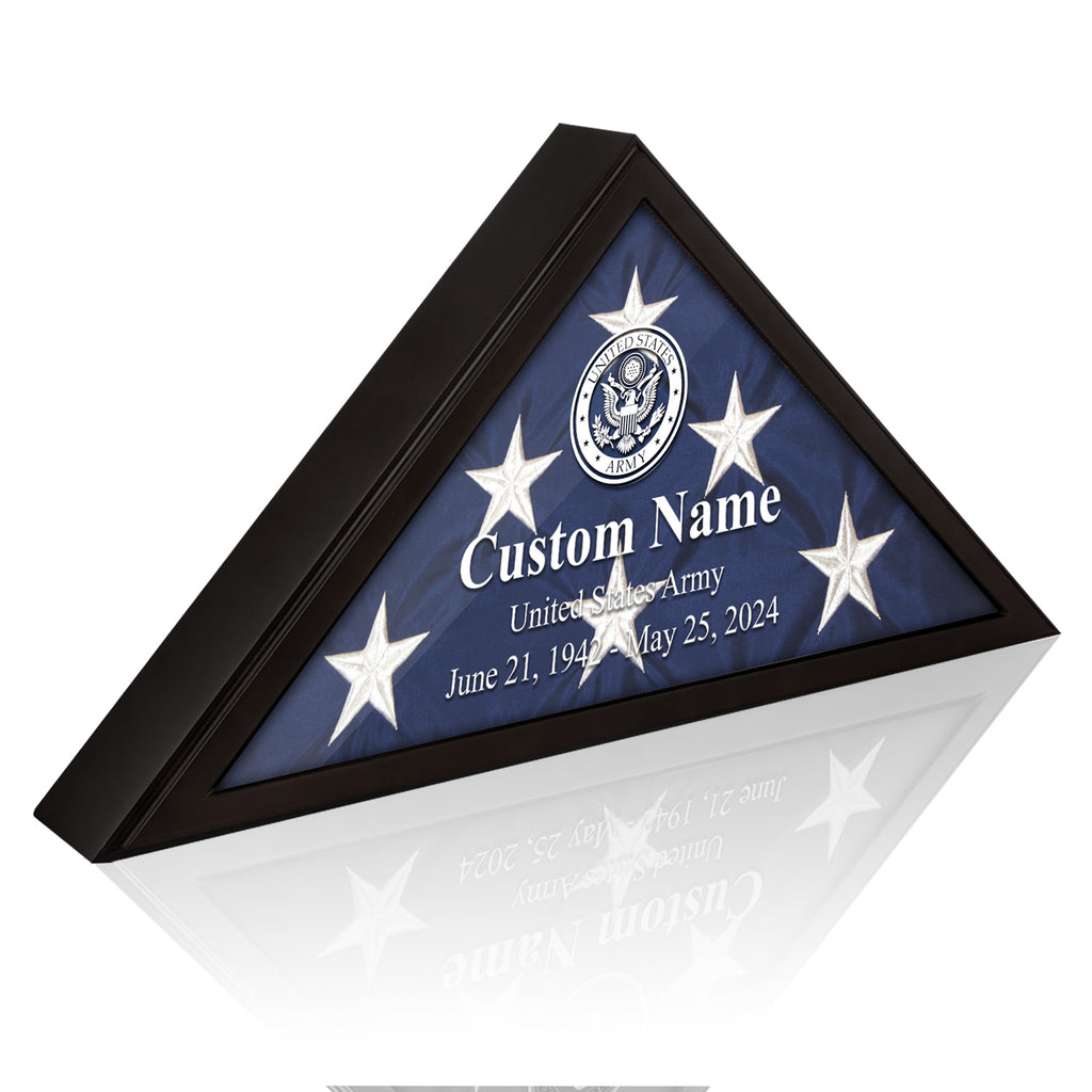 Designed specifically for 5" x 9.5" veteran burial flags, beautifully preserving and displaying the folded flag