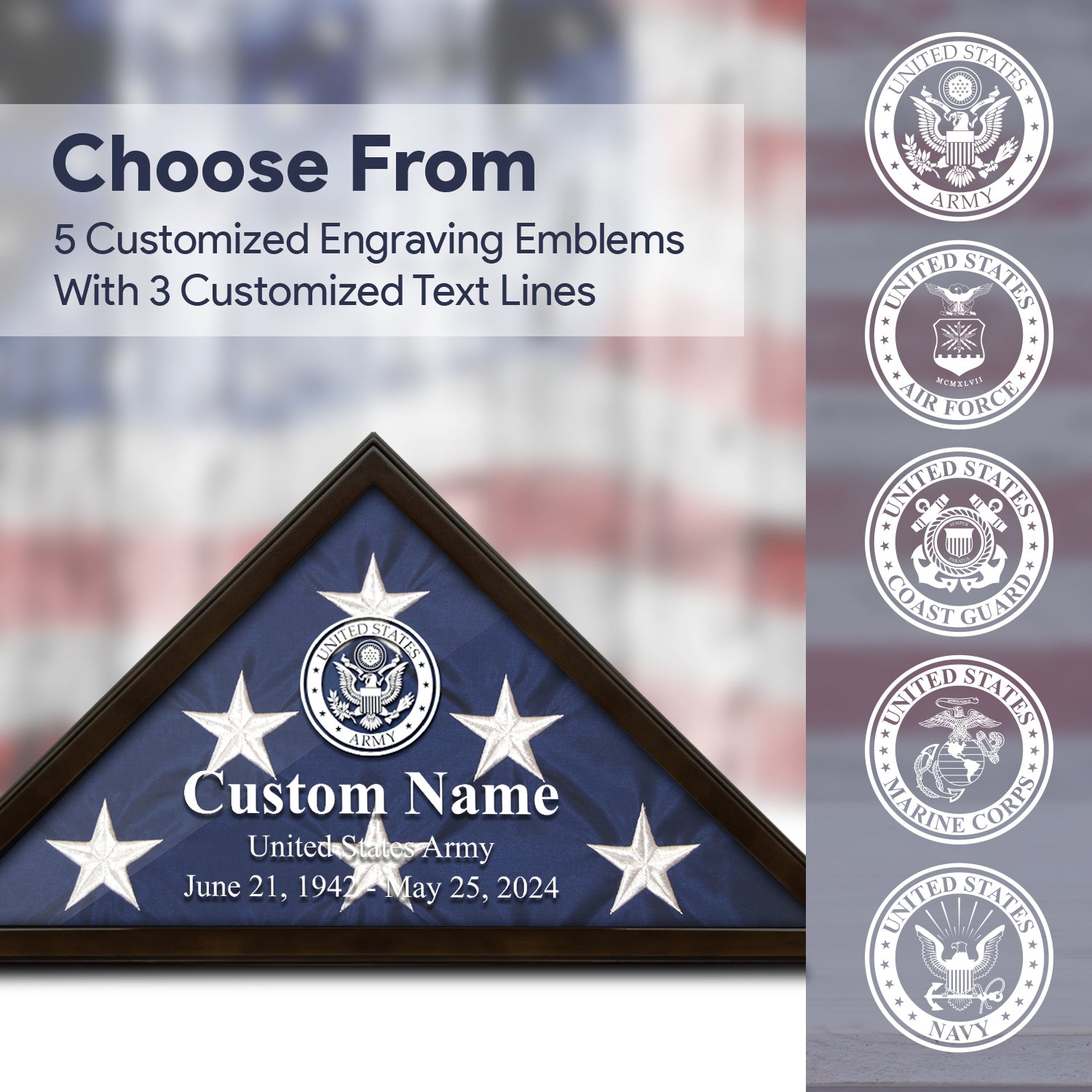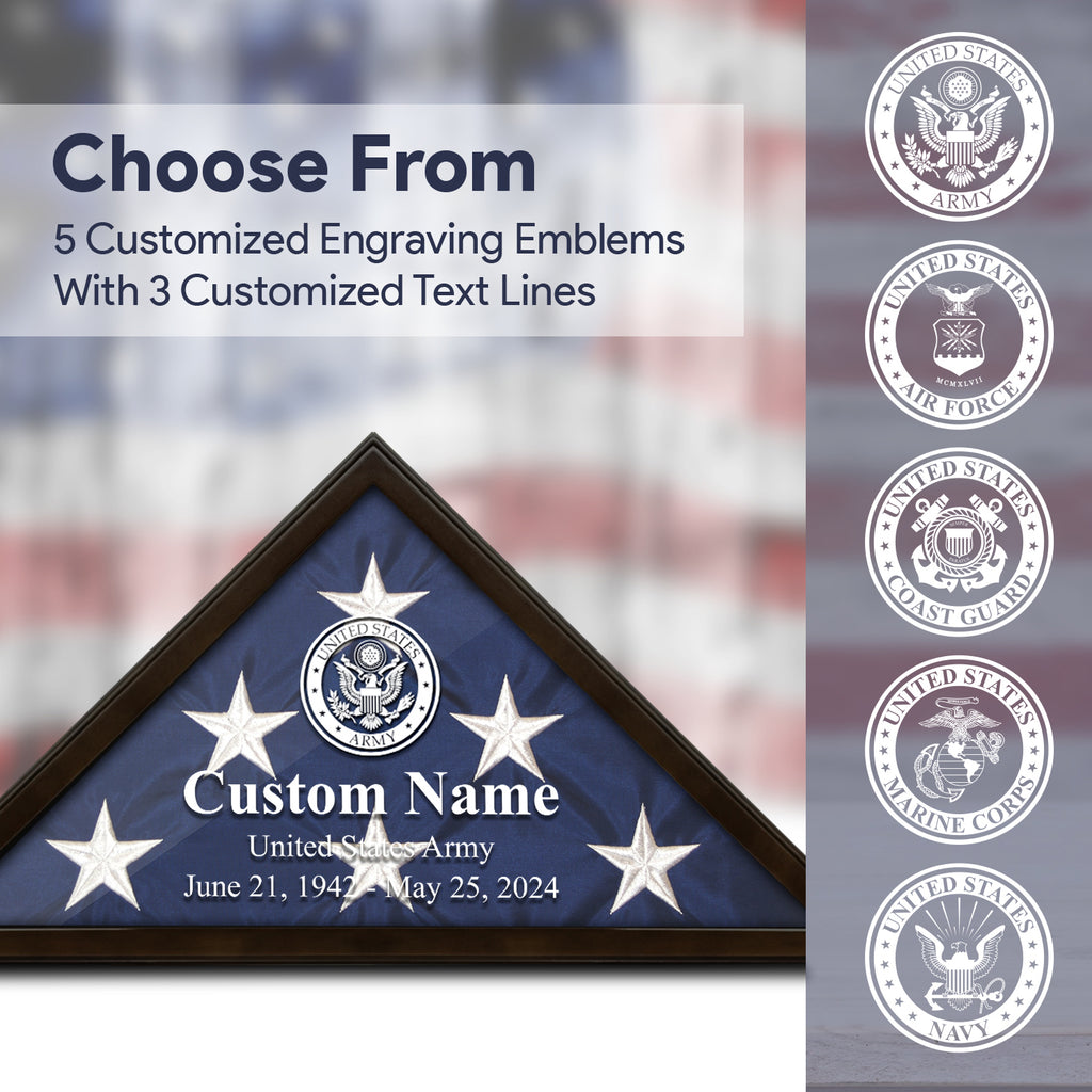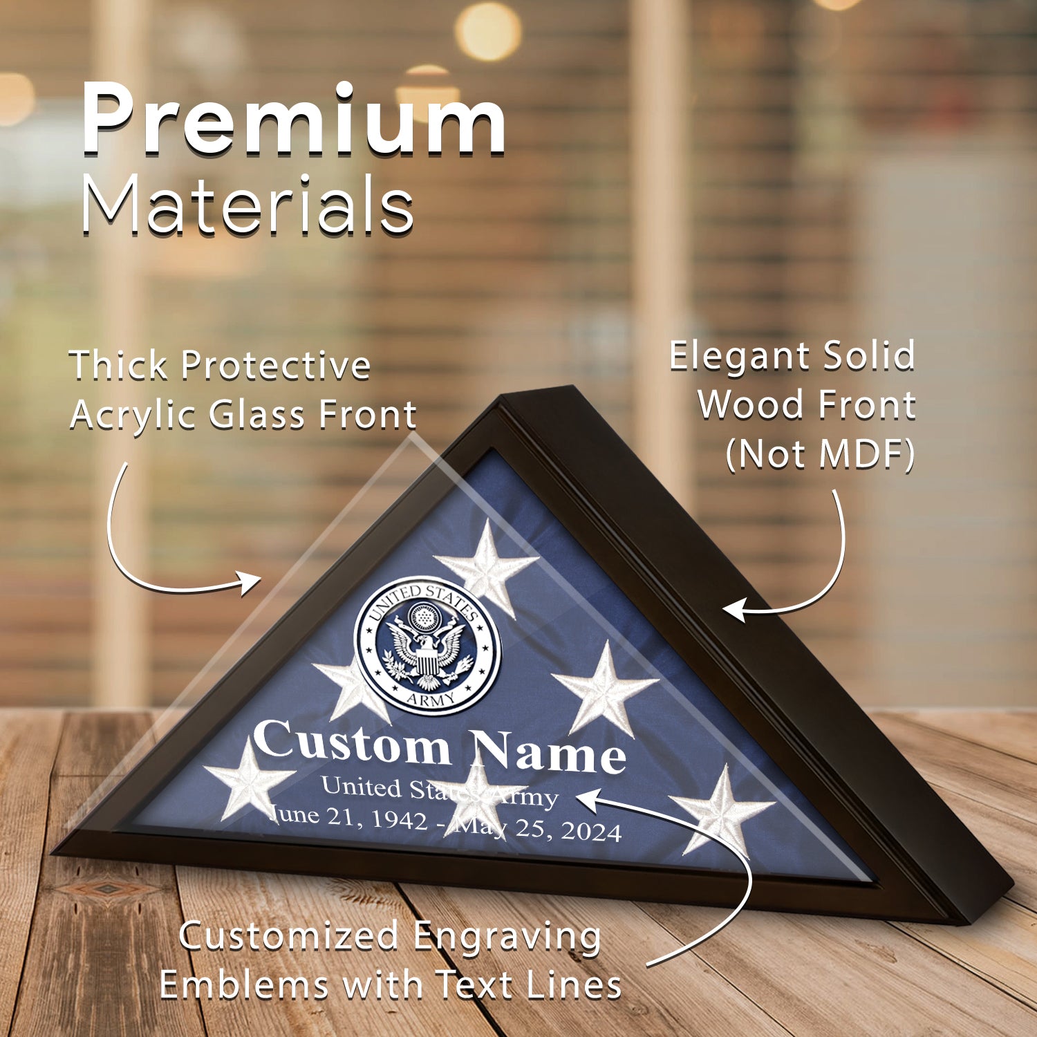 • Customizable Design: Personalize the display case with the veteran's name, rank, or any other custom text, making it a truly meaningful keepsake. It also adds a personal touch to the display case, making it a cherished keepsake for years to come.