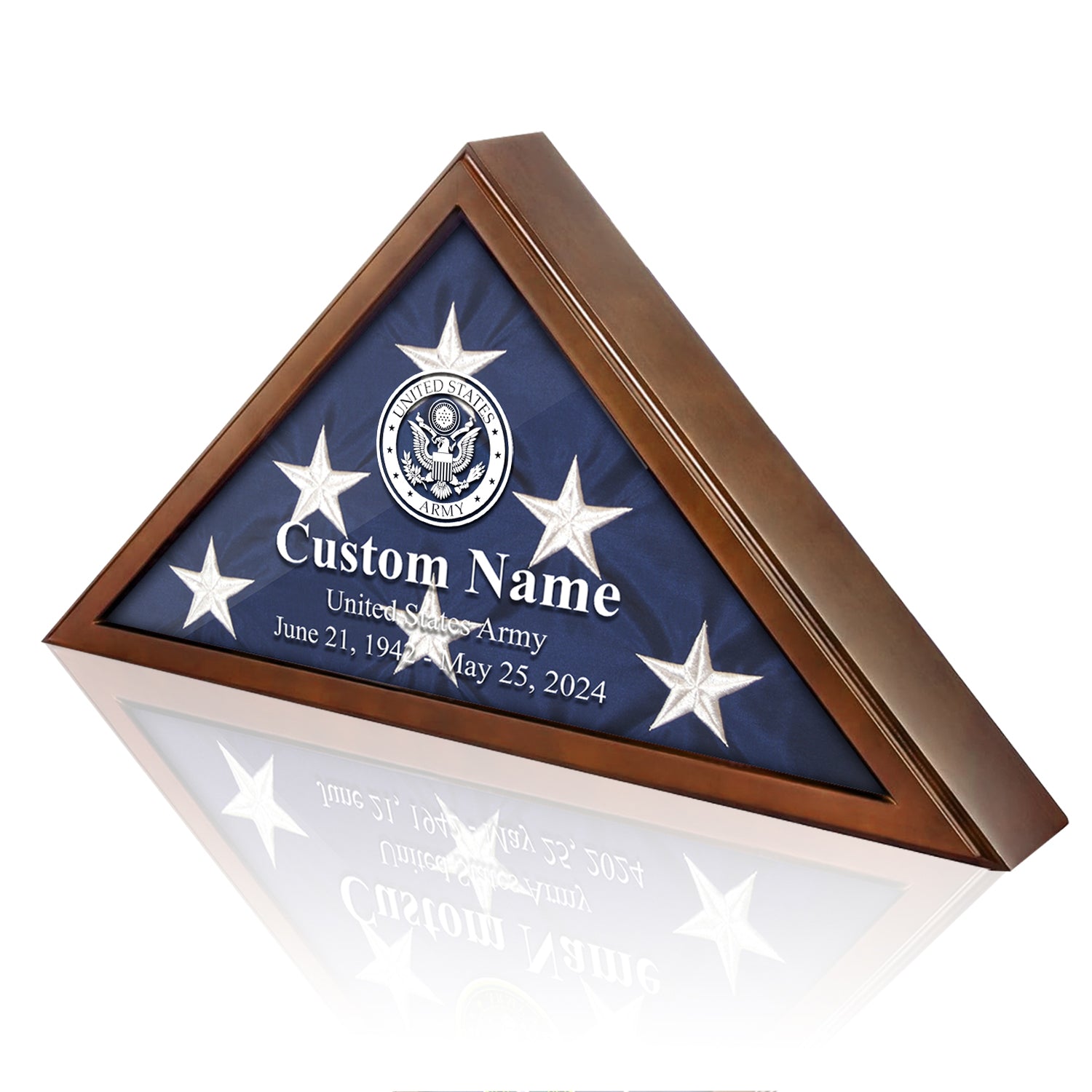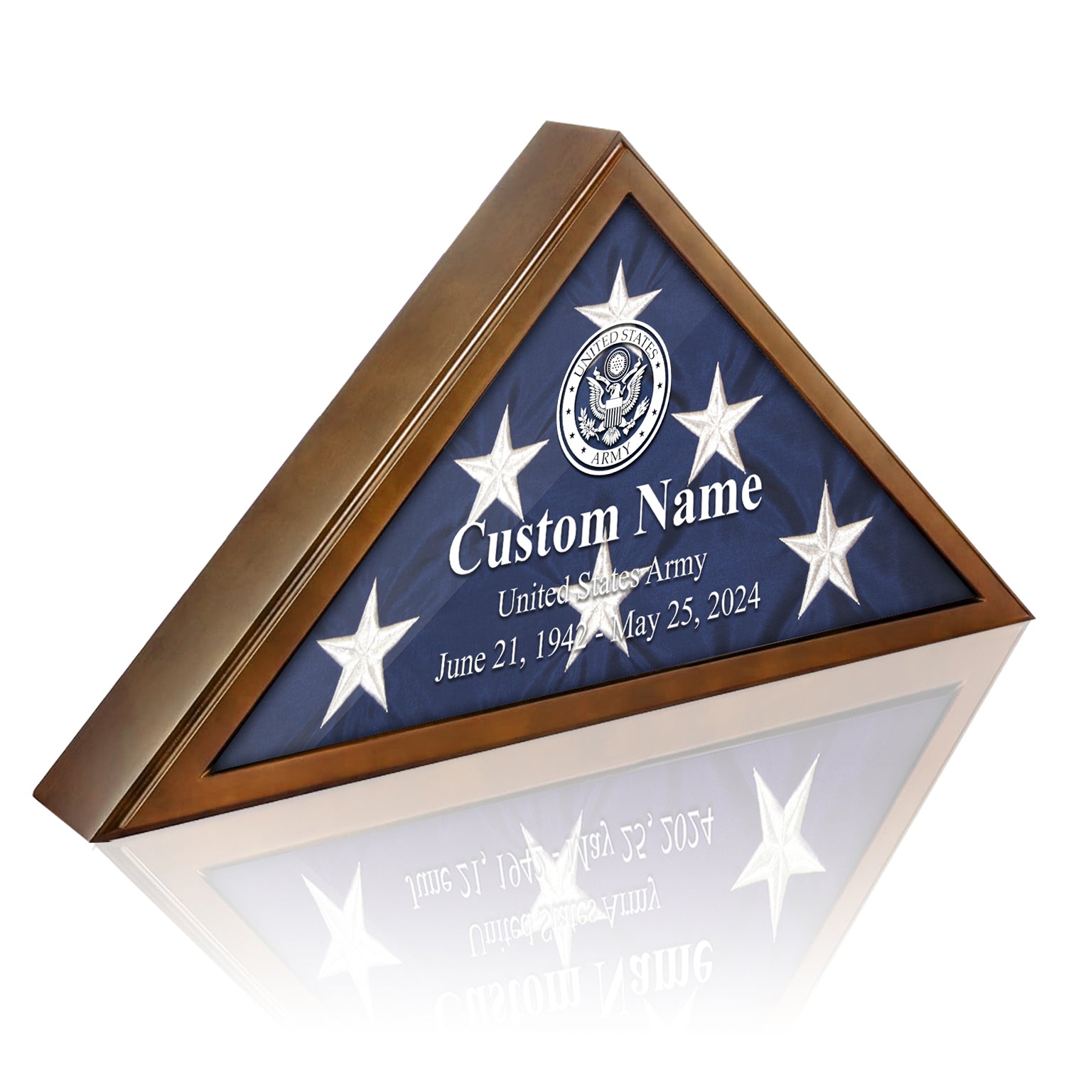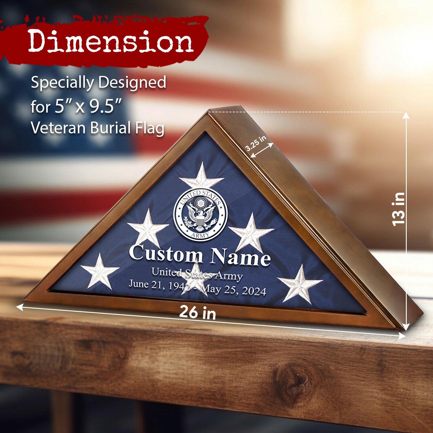 Designed specifically for 5" x 9.5" veteran burial flags, beautifully preserving and displaying the folded flag