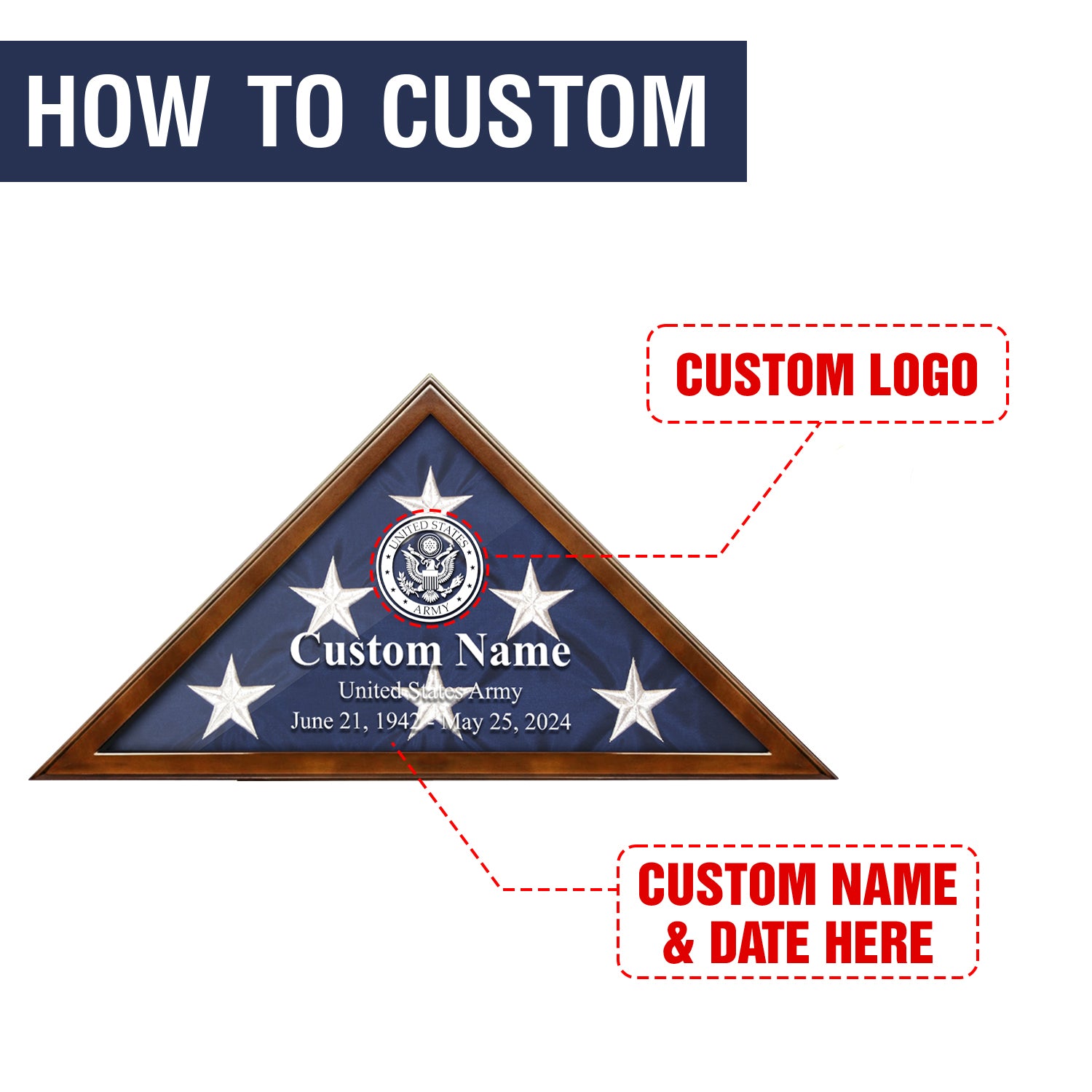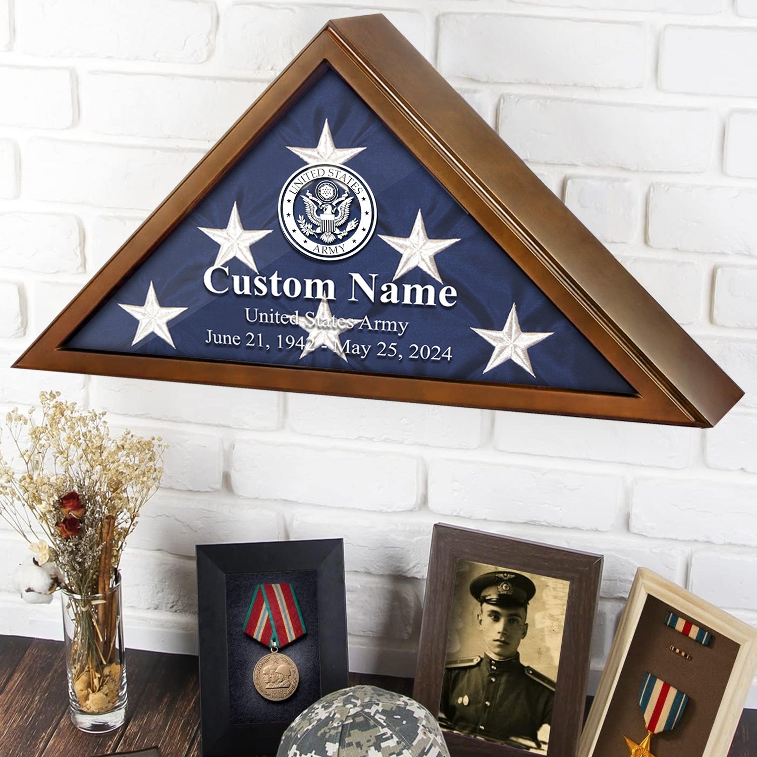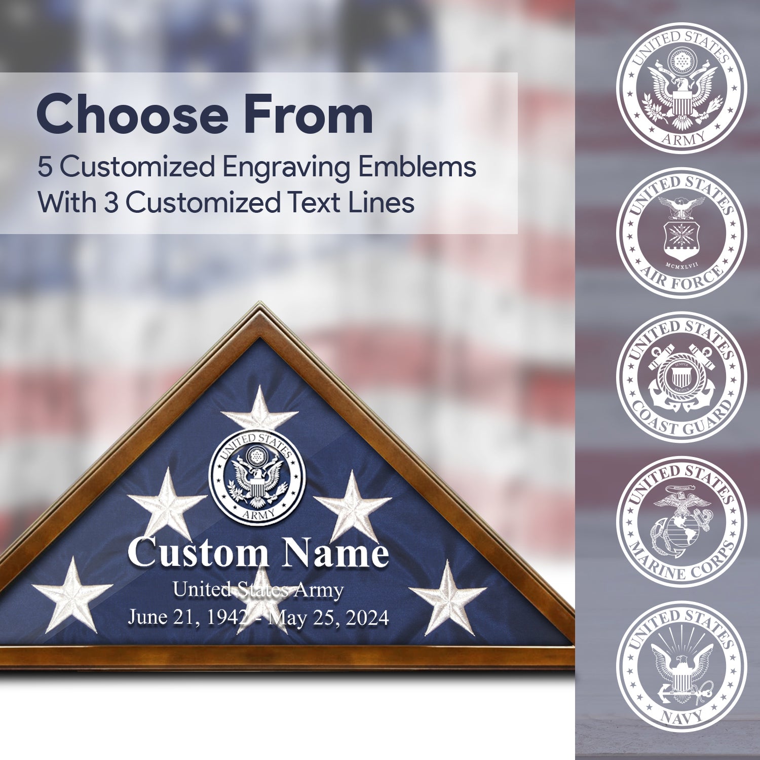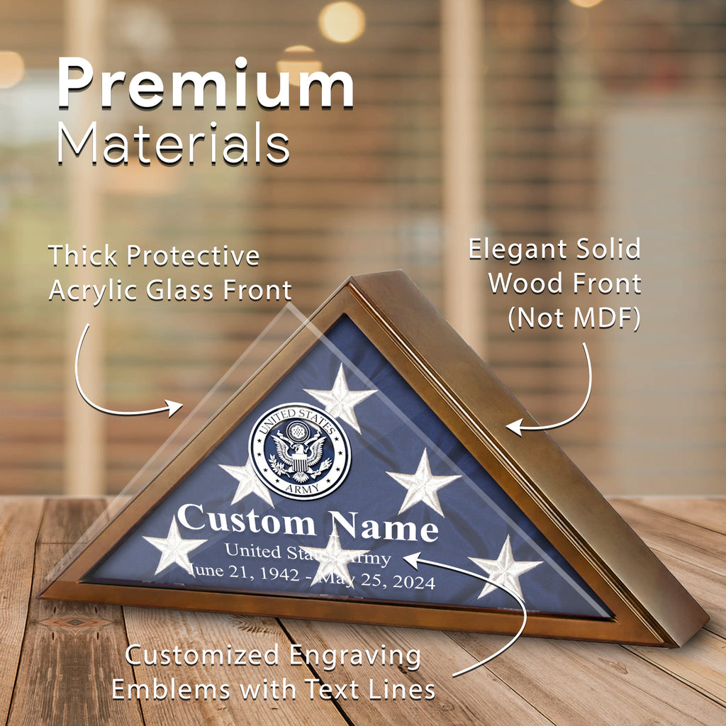 • Customizable Design: Personalize the display case with the veteran's name, rank, or any other custom text, making it a truly meaningful keepsake. It also adds a personal touch to the display case, making it a cherished keepsake for years to come.