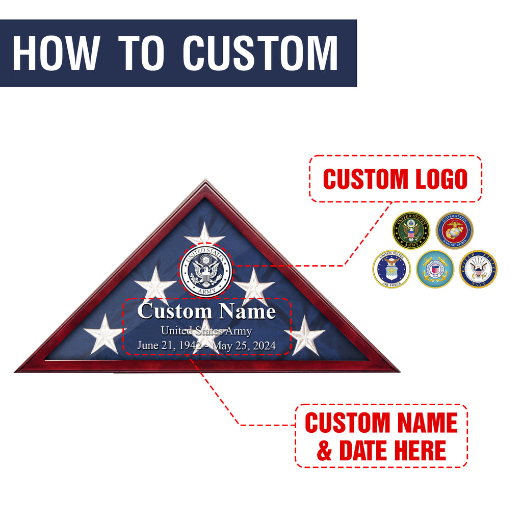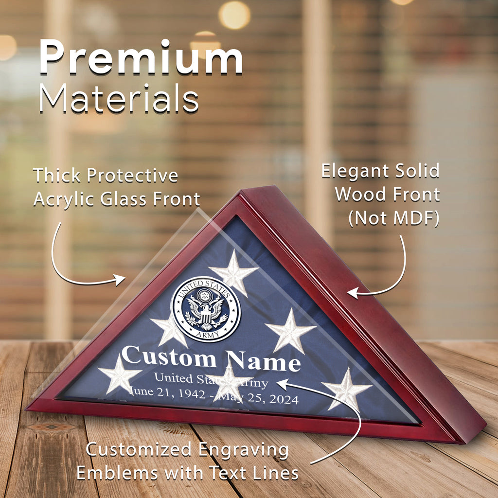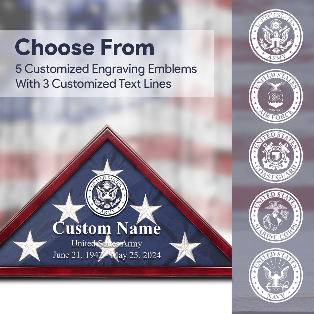 • Customizable Design: Personalize the display case with the veteran's name, rank, or any other custom text, making it a truly meaningful keepsake. It also adds a personal touch to the display case, making it a cherished keepsake for years to come.